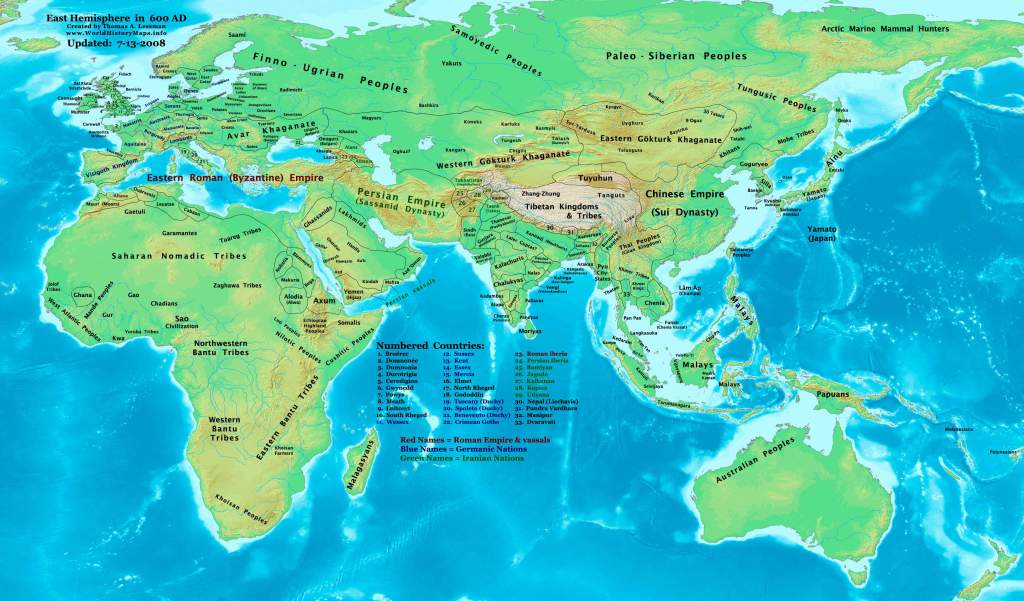 En este mapa puedes ver como estaba organizado el mundo en el año 570